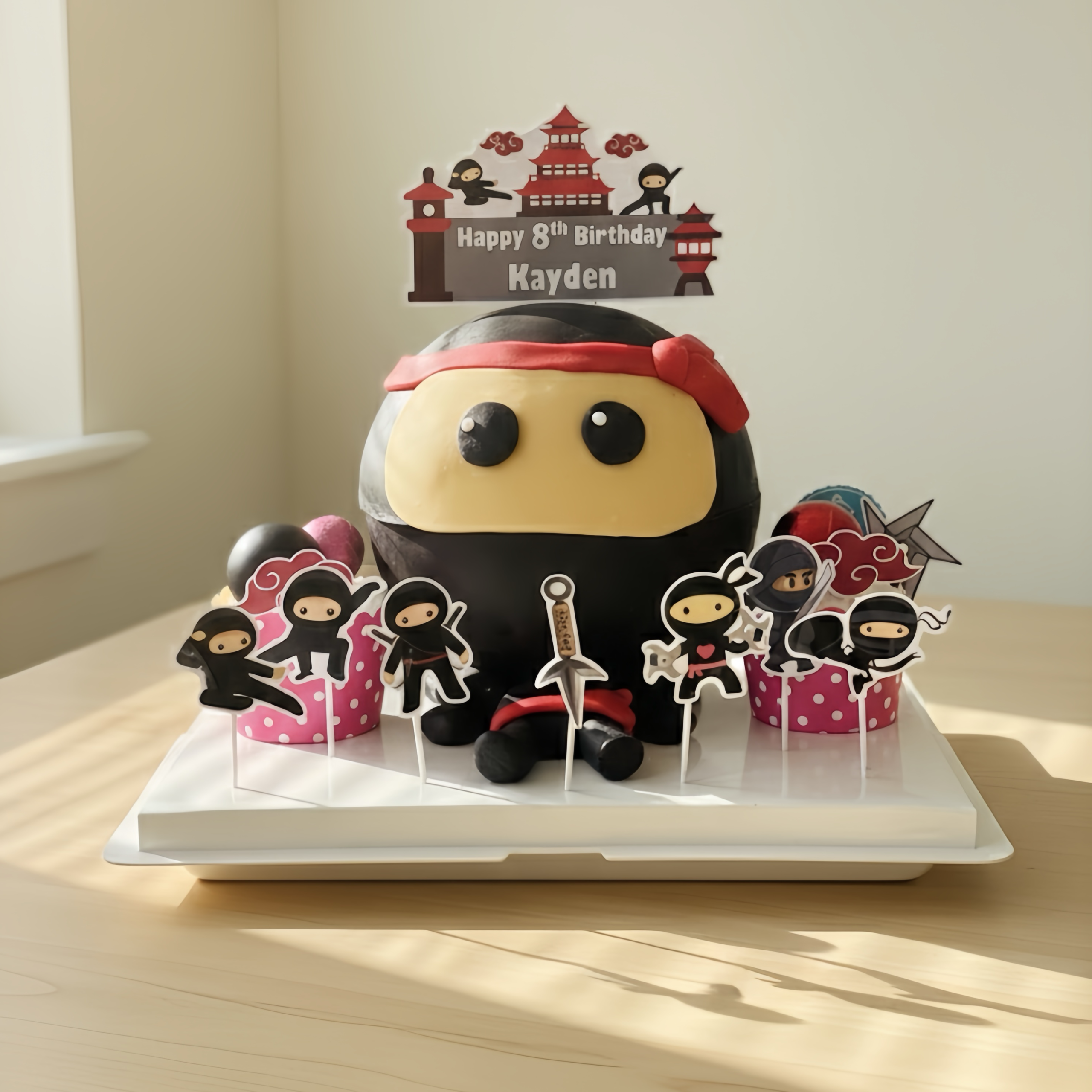 Black Ninja theme knock knock cake filled chocolate and candies