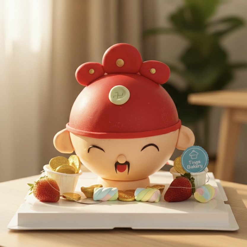 God Of Wealth / Fortune CNY theme knock knock cake filled with couplets and auspicious decorations