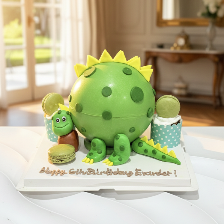 Little dinosaur theme knock knock cake filled with chocolate and candies