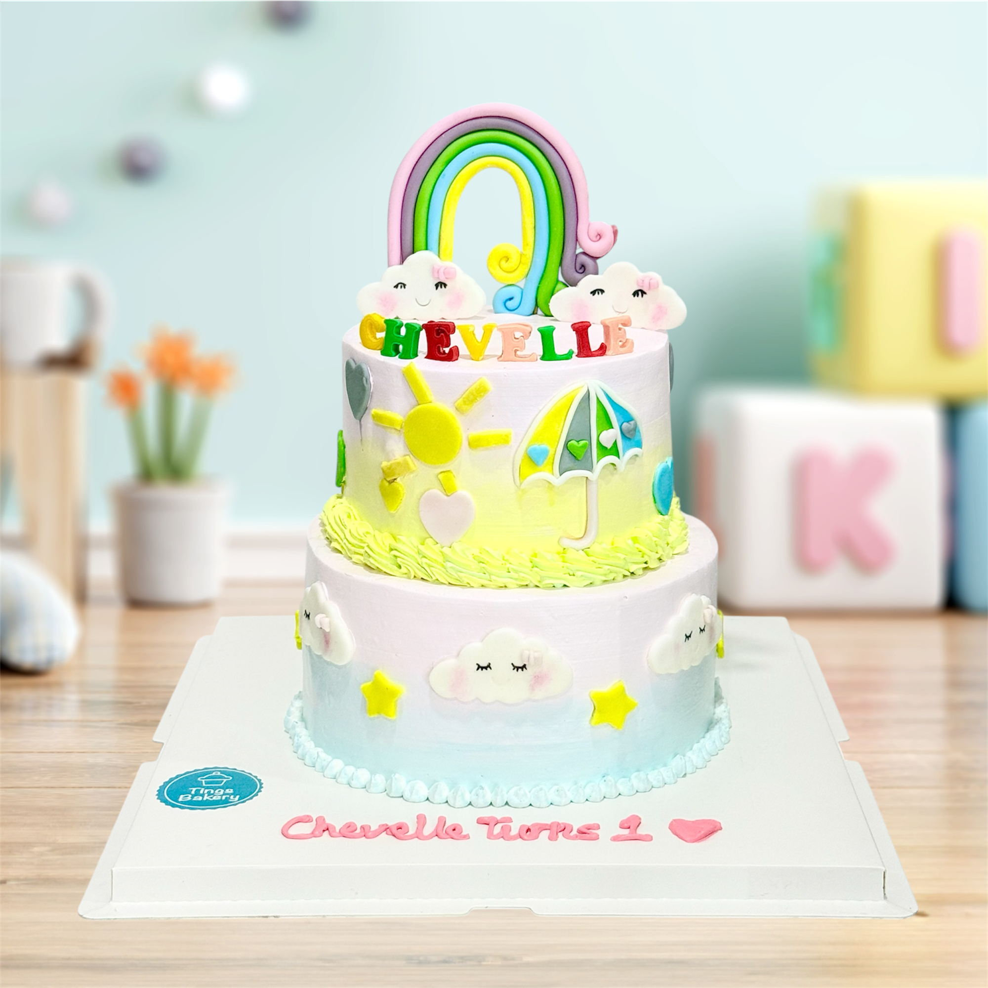 Enter the world of pastel surrounded with rainbow, clouds, star and sun